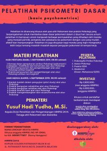 HIMPSI JAYA kembali mengadakan Pelatihan Psikometri dasar yang dikelola oleh Koperasi Harjaya Jiwangga Utama. Pelatihan ini dirancang khusus oleh para ahli Psikometri dan praktisi Psikologi yang berpengalaman dan berlangsung selama 2 (dua) hari, yang akan diadakan pada: